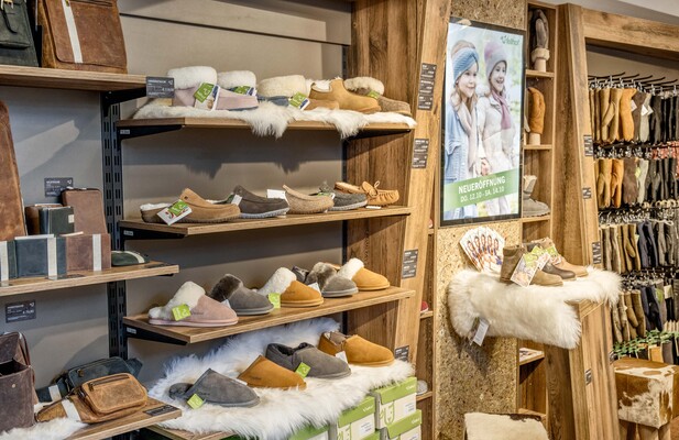 A variety of lambskin products in the Salzburg Fellhof Shop